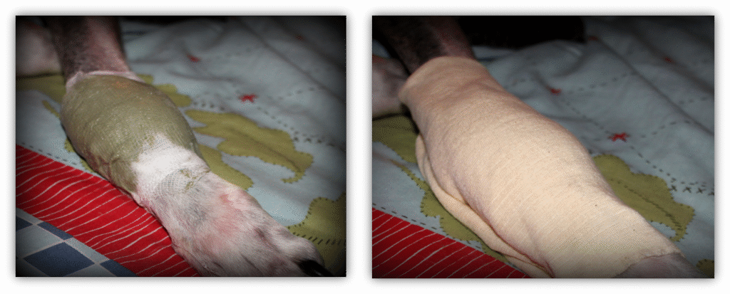 - Coloca la gasa sobre la zona afectada, fijándola con venda sin apretar. Déjala actuar entre 30-40 minutos. Repetir 1-2 veces al día según el caso.